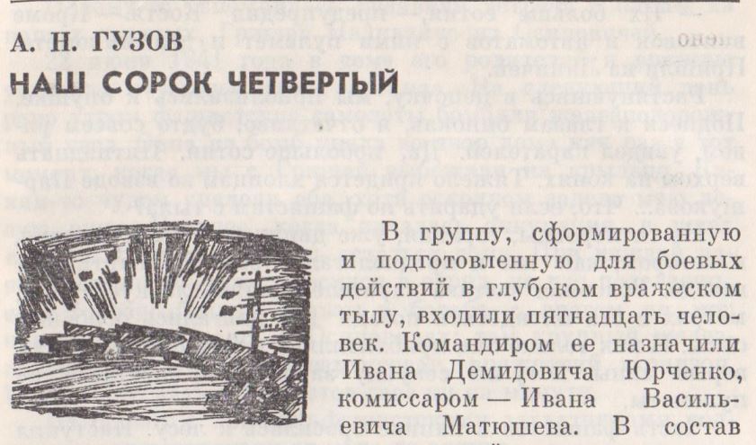 Публикация подготовлена на основе воспоминаний А. Н. Гузова “НАШ СОРОК ЧЕТВЕРТЫЙ” из книги “Рейдовая в походе”.