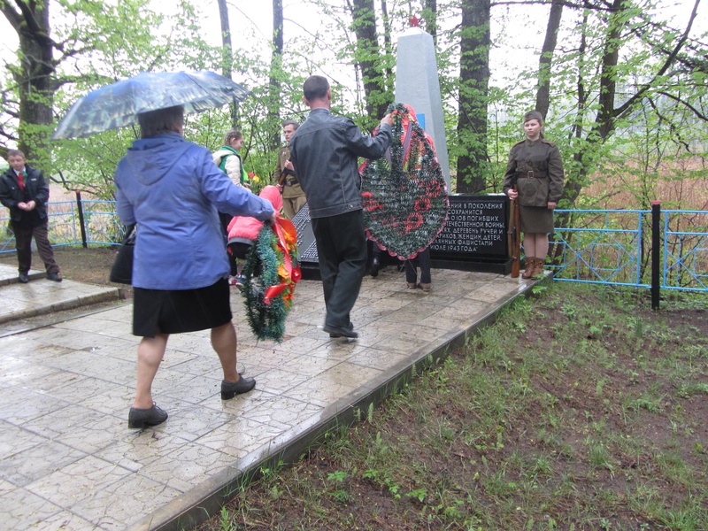 - ПО НАСЕЛЕННЫМ ПУНКТАМ: На табличке указано, что расстреляны мирные жители двух деревень – Ручей и Целянка, а в мемуарах Т.Фомина указывает 3 населенных пункта – Поповка, Ручей и Целянка…
