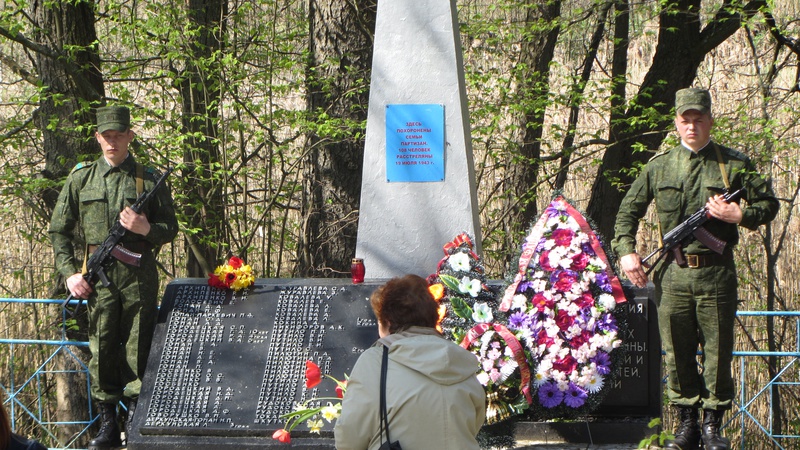 1 и 4 – к событиям лета 1943 года, когда на этом месте были расстреляны мирные жители из деревень Лапичского сельсовета;