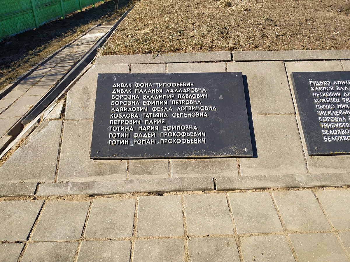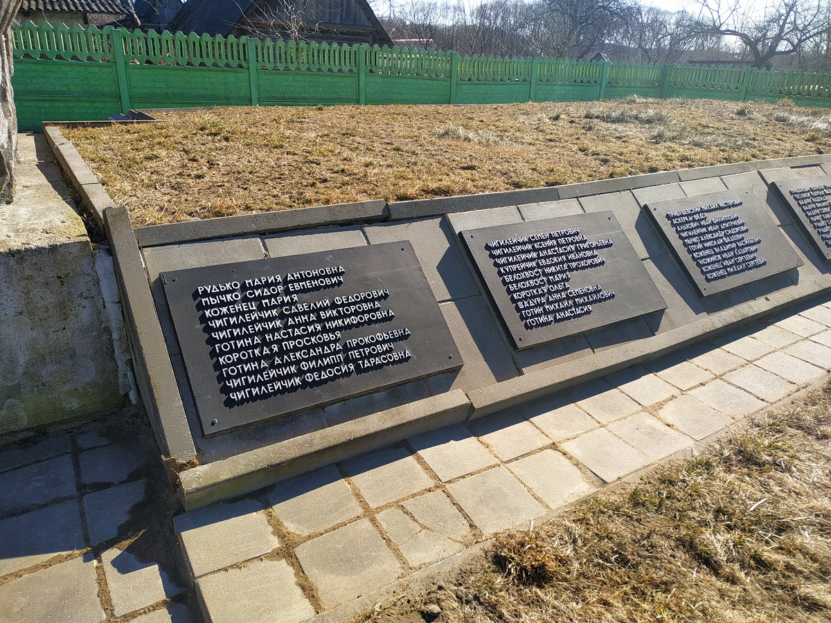 Потом снова пришли на пепелище, где были Тит Готин с Логвином и Филиппом Кожанцами. Трудно и невыносимо было смотреть на родную деревню, а еще ужаснее было то, что в огне погибли их родные, близкие, соседи. Со слезами на глазах мужчины выкопали огромную могилу и похоронили там дорогих им людей …