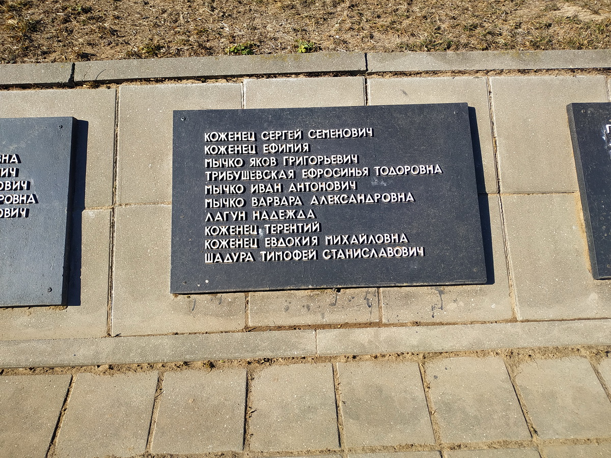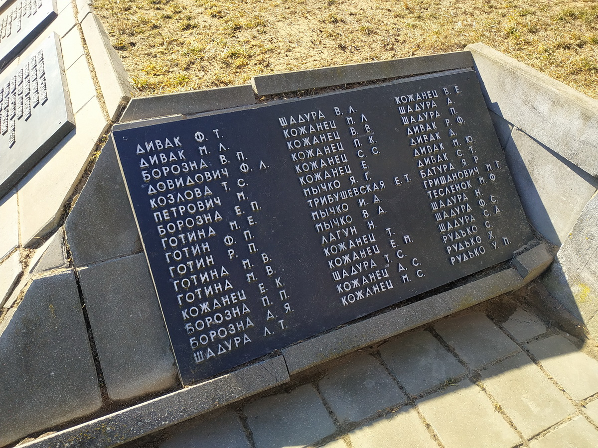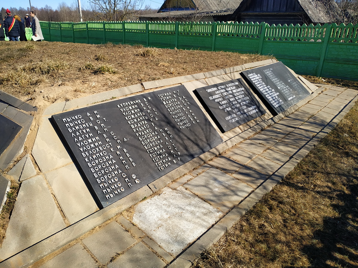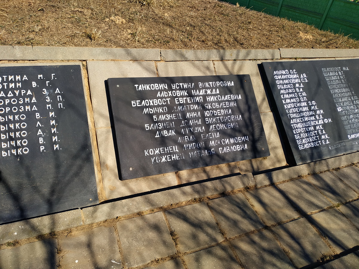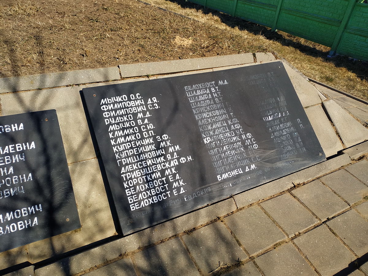 – Здесь лежат мама с тремя малолетними детьми, тети, дяди, их дети, – говорит Вера Титовна. – Родня мужа тоже. Он вместе с моим братом погнали лошадей в Лапичи, вот и остались живы. Все бы на свете отдала, чтобы родные восставали. Ранее, как была сильнее, часто к ним бегала. Приду, посижу, расскажу им, как живу, поплачу. Тогда и легче на душе становится. Кажется, что они меня слышат … Сейчас тяжеловато стало добираться, но время от времени посещаю … Недавно были чужие люди. Они ежегодно приезжают на Радуницу, цветы положат. Там местная власть старается держать порядок: покос травы, покрасят забор … Столько времени прошло, а душа болит …