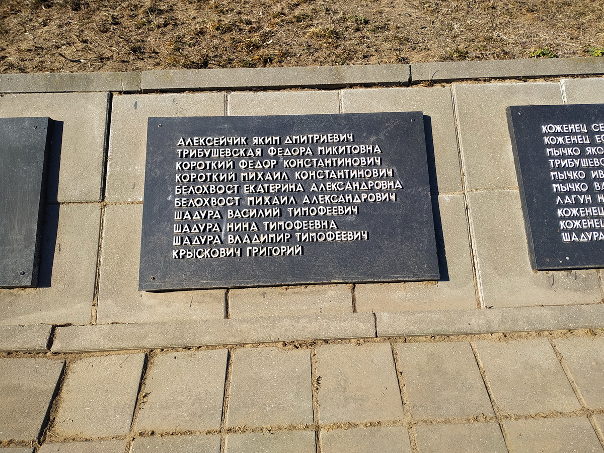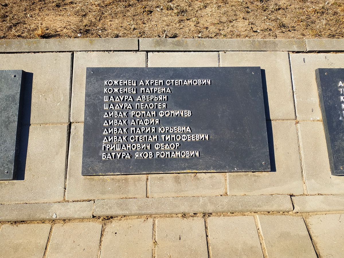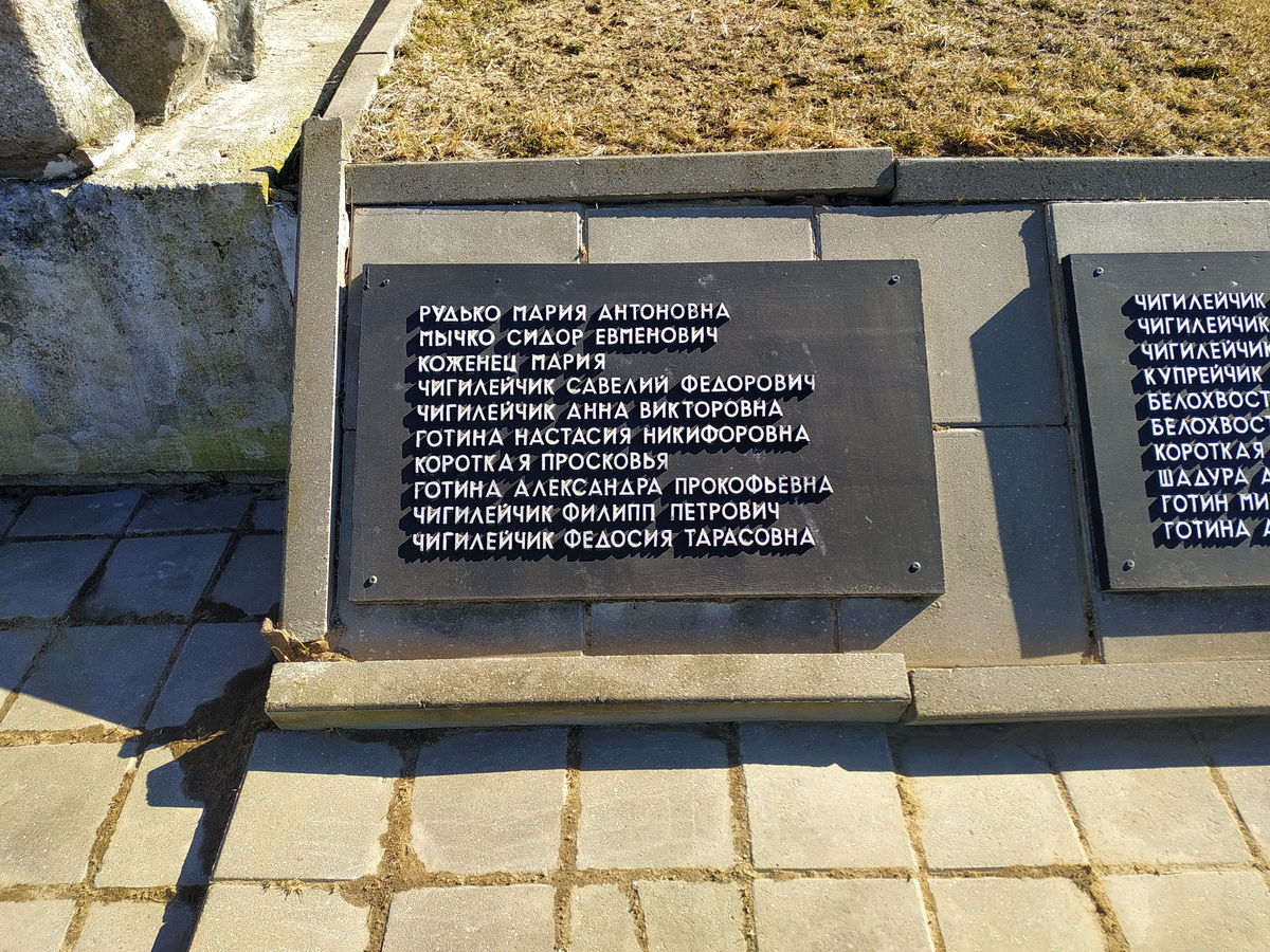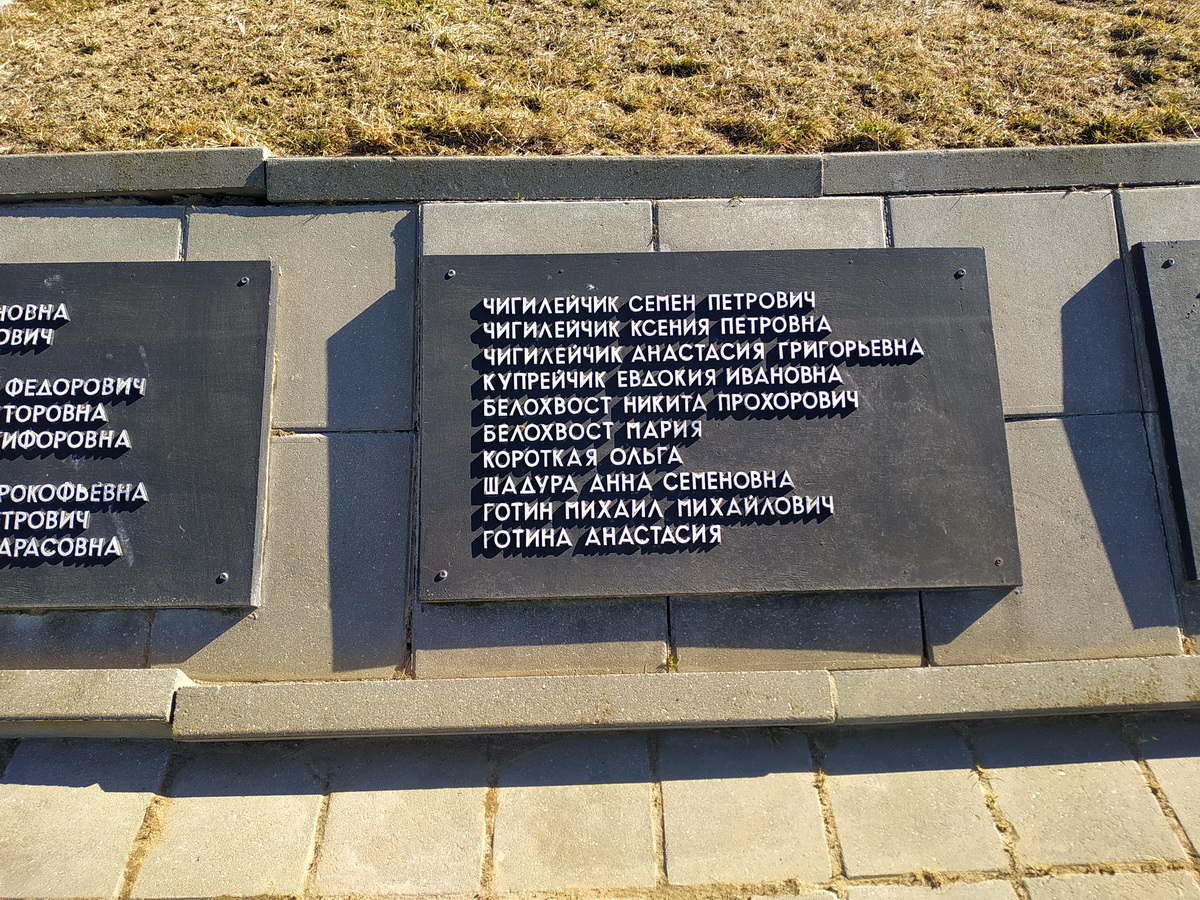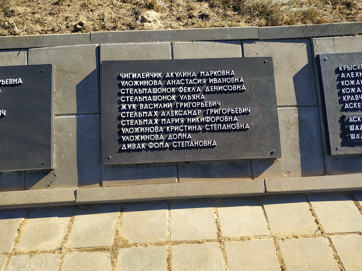 – Здесь лежат мама с тремя малолетними детьми, тети, дяди, их дети, – говорит Вера Титовна. – Родня мужа тоже. Он вместе с моим братом погнали лошадей в Лапичи, вот и остались живы. Все бы на свете отдала, чтобы родные восставали. Ранее, как была сильнее, часто к ним бегала. Приду, посижу, расскажу им, как живу, поплачу. Тогда и легче на душе становится. Кажется, что они меня слышат … Сейчас тяжеловато стало добираться, но время от времени посещаю … Недавно были чужие люди. Они ежегодно приезжают на Радуницу, цветы положат. Там местная власть старается держать порядок: покос травы, покрасят забор … Столько времени прошло, а душа болит …