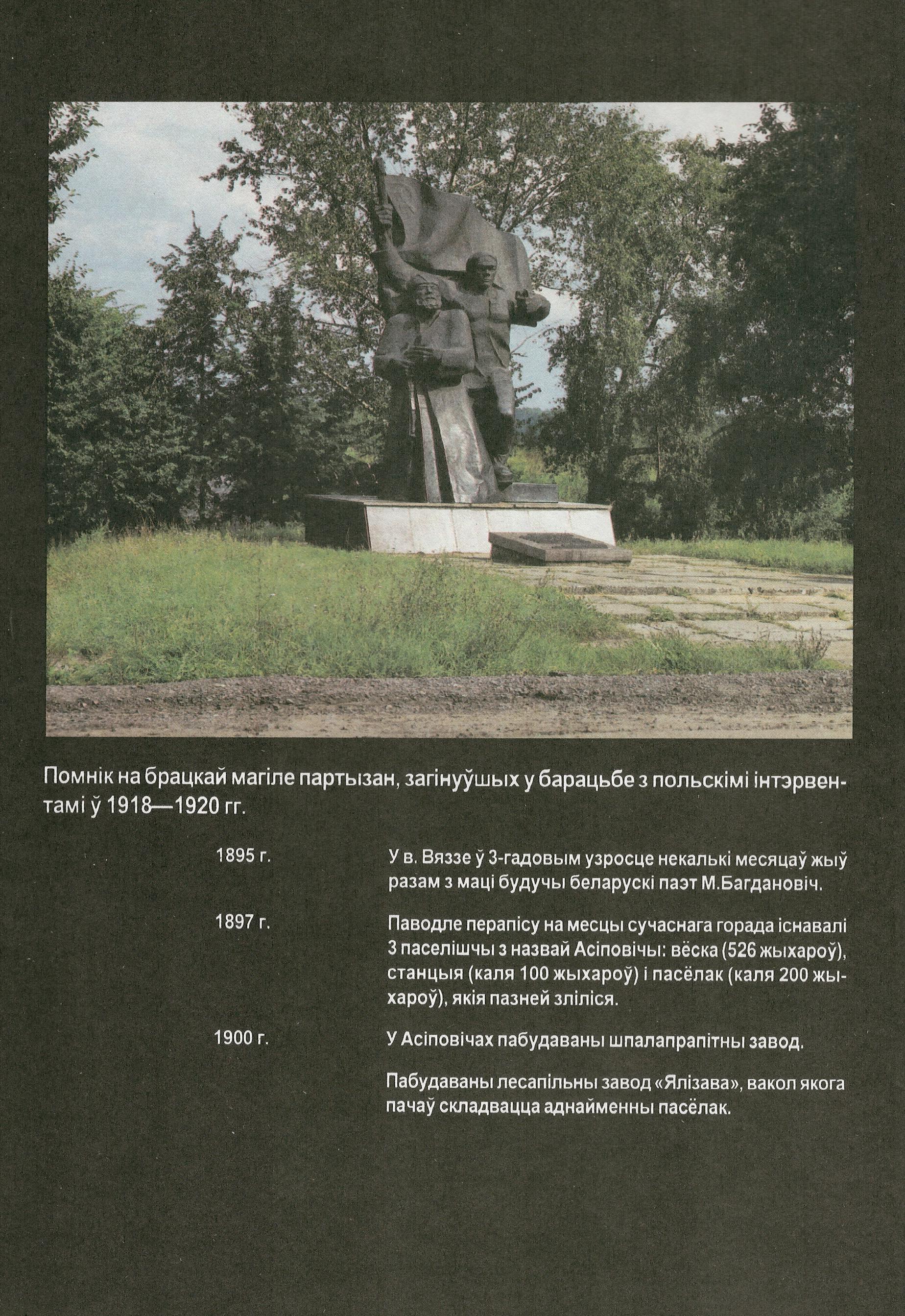 1897 год Согласно переписи на месте современного города существовали 3 поселения с названием “Осиповичи”: деревня (526 жителей), станция (около 100 жителей) и поселок (около 200 жителей), которые позже слились