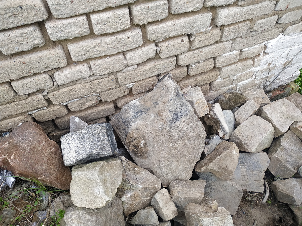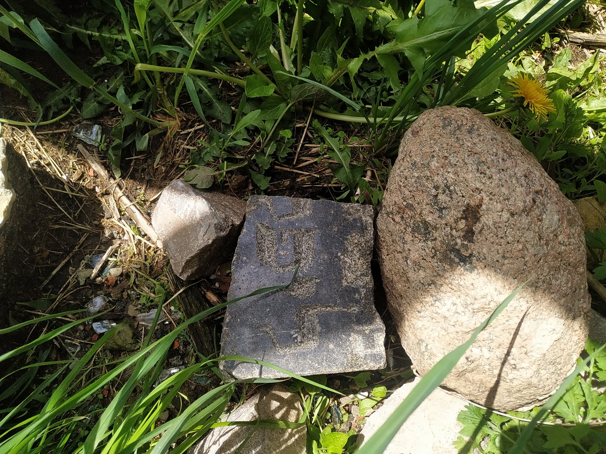 Мелкие фрагменты (осколки) с надписями были свалены за сараями возле дома №1 по ул. Армейской.