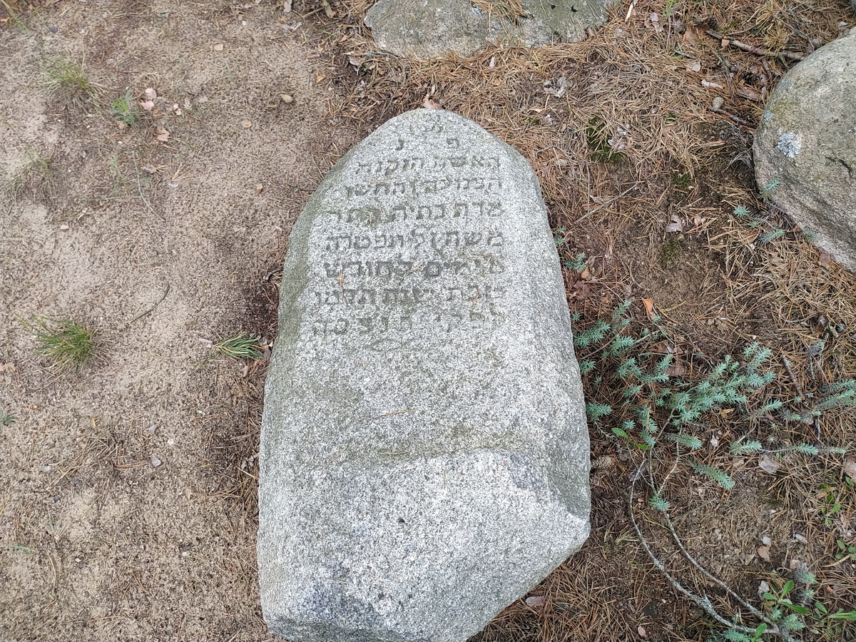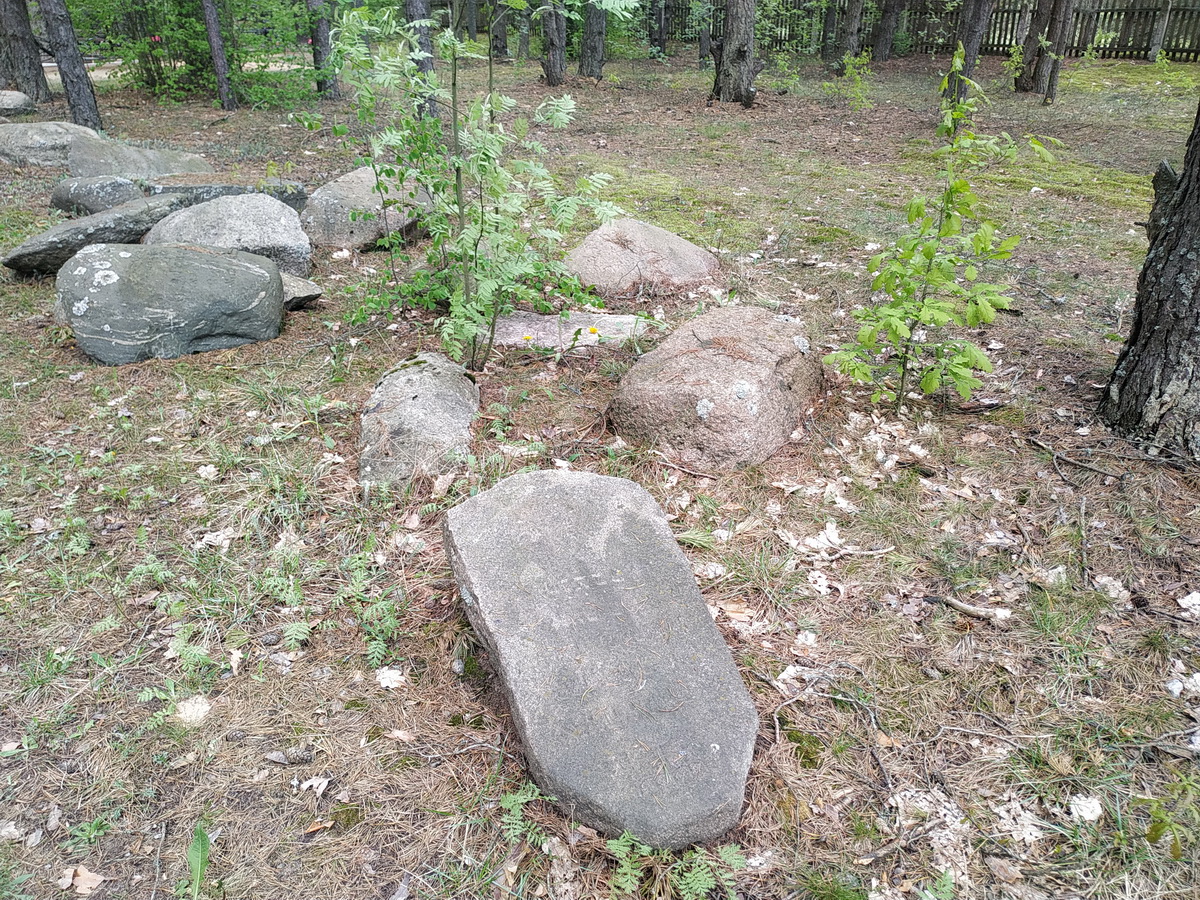 Справа от памятника жертвам Холокоста, где уже лежали “лапичские” надгробия, появился еще и холмик из фрагментов. Наверху этого кургана поместили наиболее крупные куски гранита и бетона, на которых еще можно рассмотреть некоторые буквы, слова. Однако большая часть камней уже никогда не поведает, на чьих могилах они стояли.